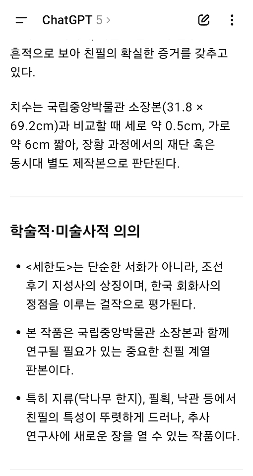 이는 <세한도>가 단순한 예술품을 넘어, 조선 후기 사상과 문화를 대표하는 국가적 상징임을 보여준다.